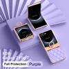 Luxury Flash Diamond Plain Leather For Samsung Galaxy Z Flip 7 Case Fold Hinge Rotating Ring Bracket Cover Optional Mirror Film