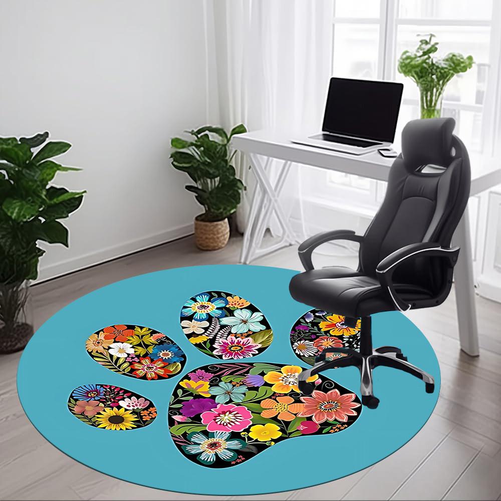 1pc Floral Paw Print Office Round Rug, Non-slip, Soft and Durable Office Rug for Interior Decoration, Perfect for Office,Decoration Yy260204018