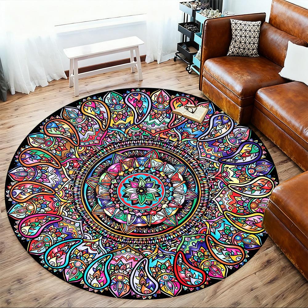 1pc Mandala, Paisley Pattern Office Round Rugs, Under Chair Round Rugs for Living Room, Bedroom, Bathroom Decoration Carpet 091839