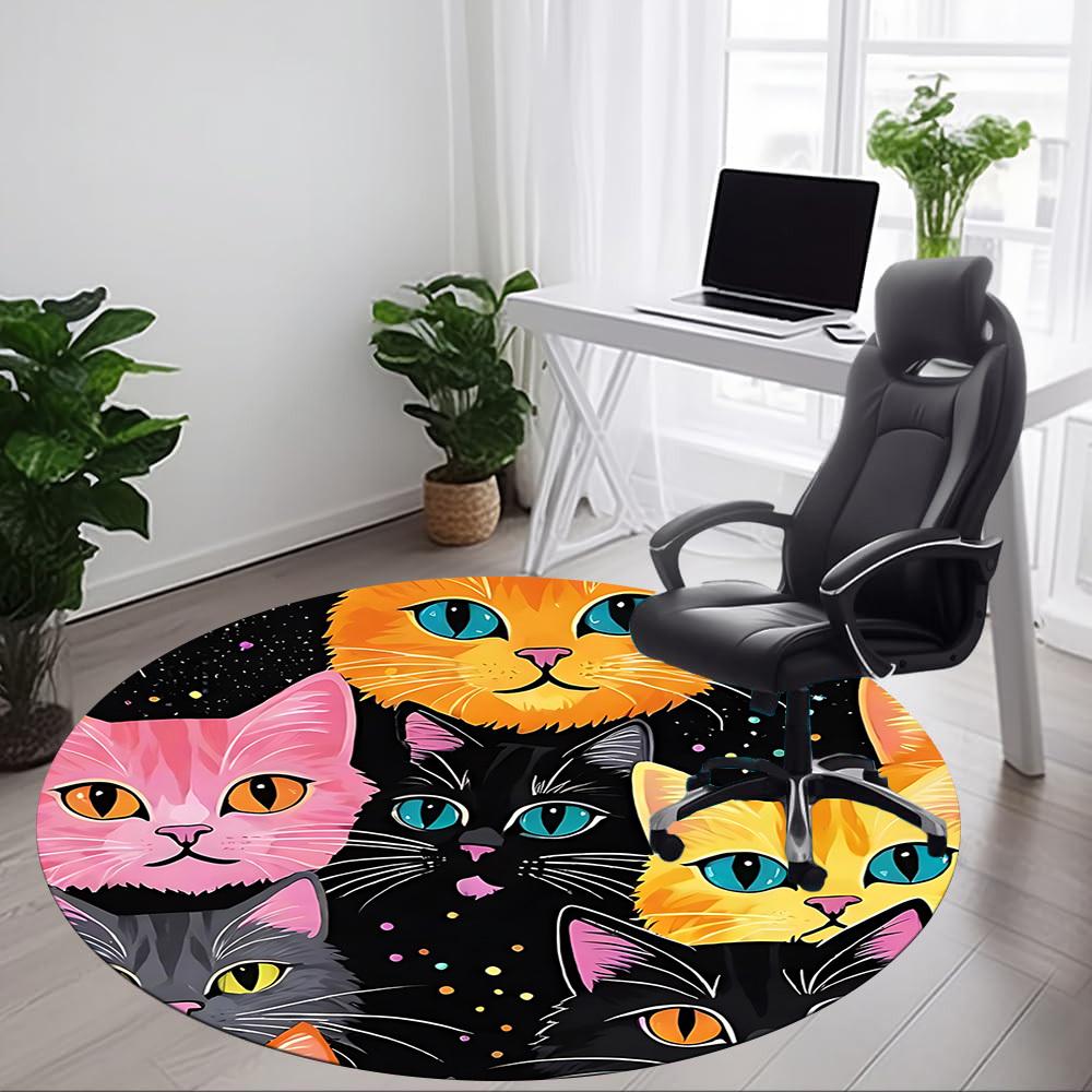 1pc Colorful Cats Carpet for Office Non-Slip, Round Carpet, Soft & Comfortable, Carpet for Office, Lightweight Round Floor Mat Yy251226068