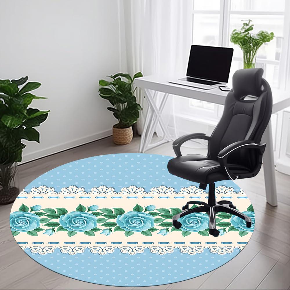 1pc Blue Rose Lace Pattern Office Round Rug, Carpet for Office, Gaming, Lightweight Round Floor Mat Yy260208029