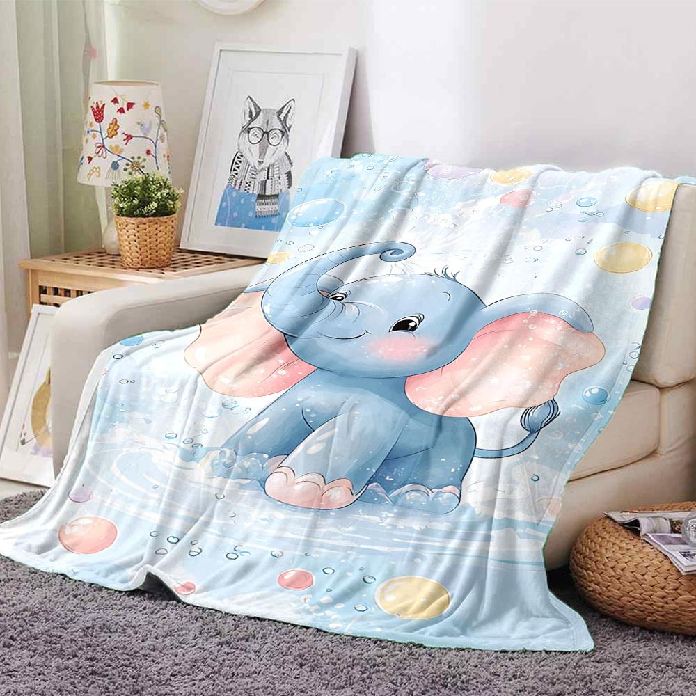 1pc Elephant Name Blanket Lightweight Flannel Throw for Sofa Bed Travel Camping Livingroom Office Couch Chair