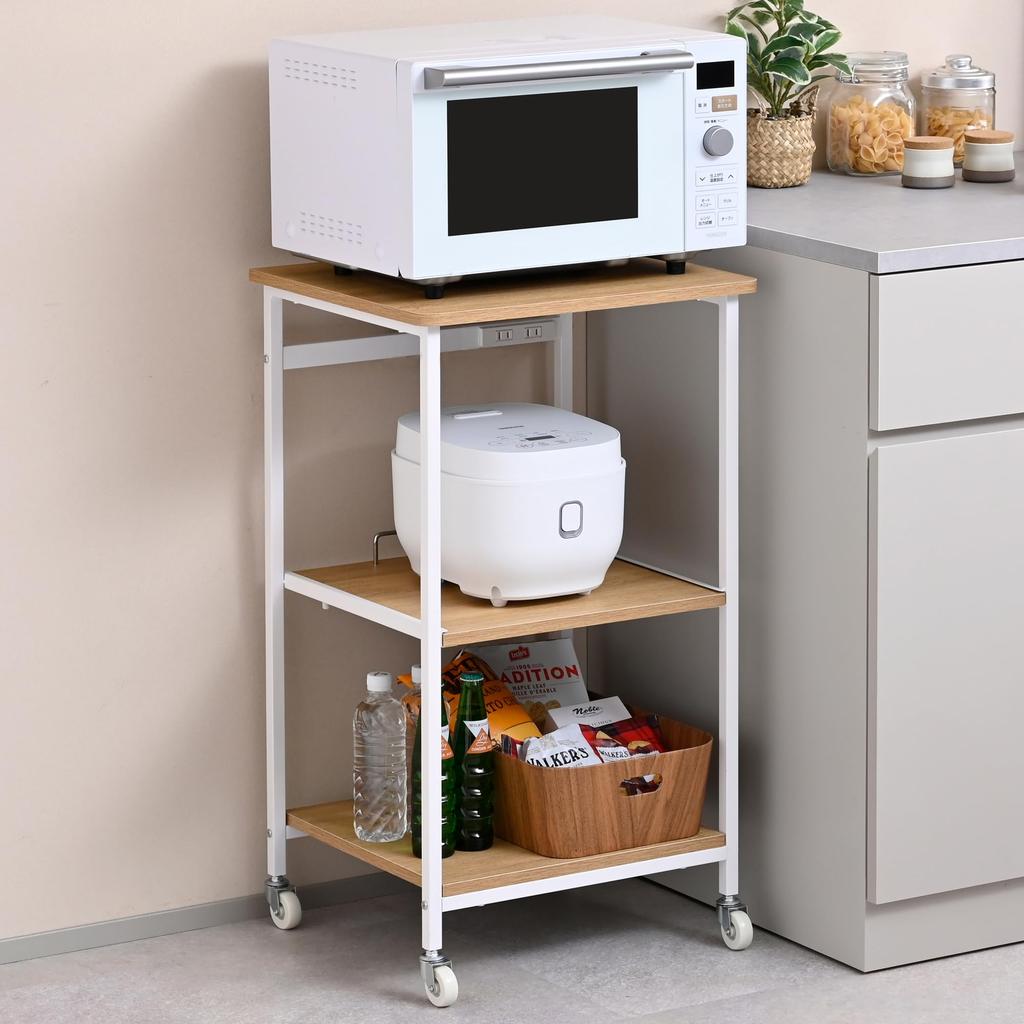 [Recommended for microwave stand] This kitchen rack is compact, measuring just 48cm wide, making it ideal for single-person or studio apartments. Its height of 85cm is the same as a standard sink, making it convenient for use as a kitchen or serving stand.