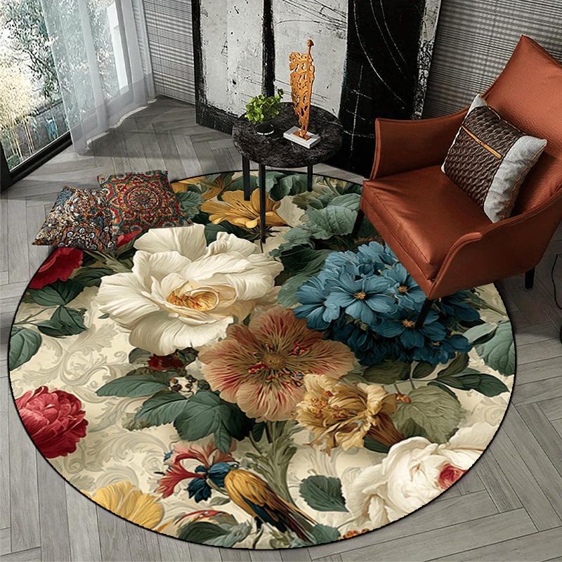 1Pcs Round Woven Area Rug Non-Slip Machine Washable Polyester Floor Mat for Living Room Bedroom Outdoor Patio Garden Deco