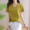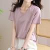Women's Summer Short-Sleeve Loose-Fit Solid Color Plus Size T-Shirt V-Neck Elegant Commuter Base Layer