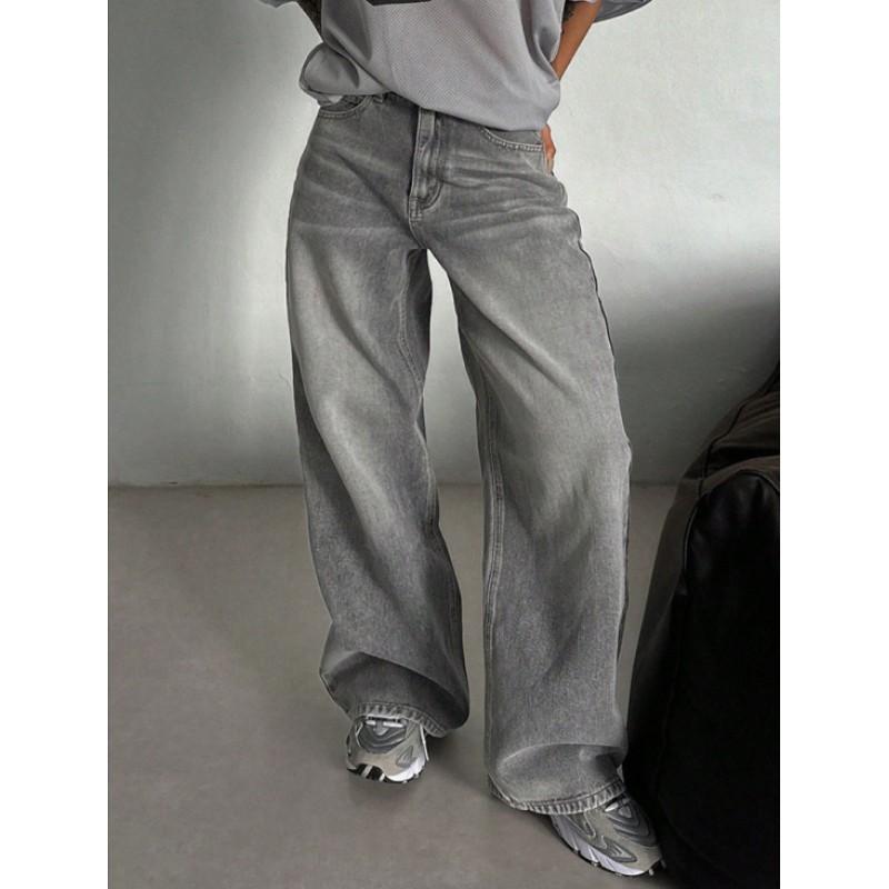 Women's Spring/Fall Drapey Straight-Leg Vintage-Style Jeans Loose-Fit High-Waisted Wide-Leg Casual Long Pants
