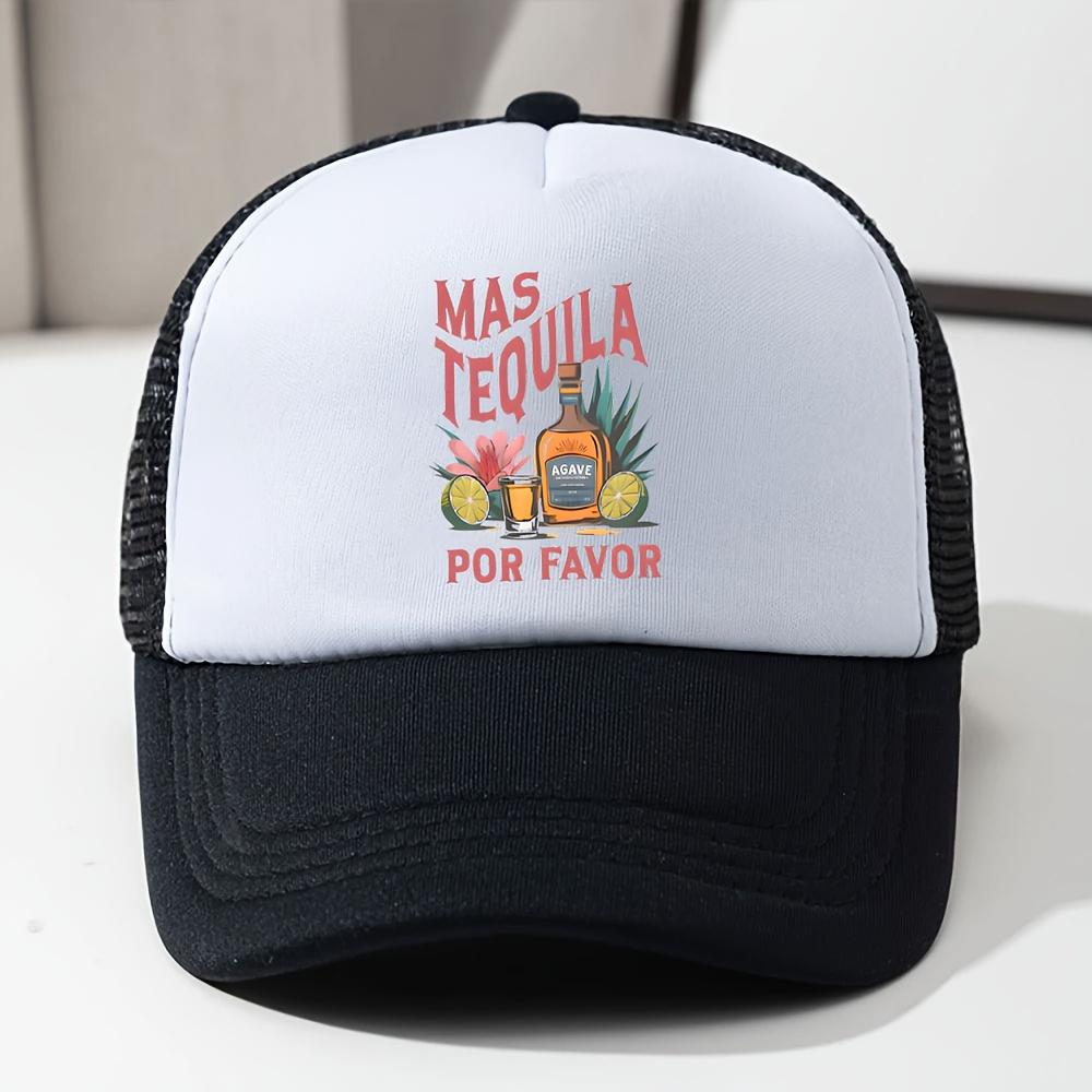 Tequila Mas Por Favor Graphic Trucker Hat Breathable Mesh Back Casual Outdoor Cap for Men and Women