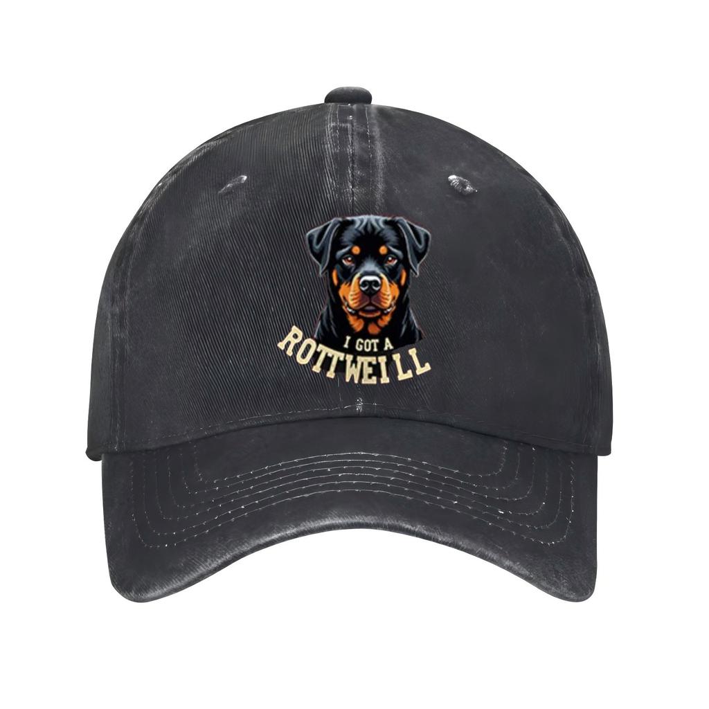 Rottweiler Dog Print Baseball Cap Unisex Distressed Polyester Casual Hat for Pet Lovers