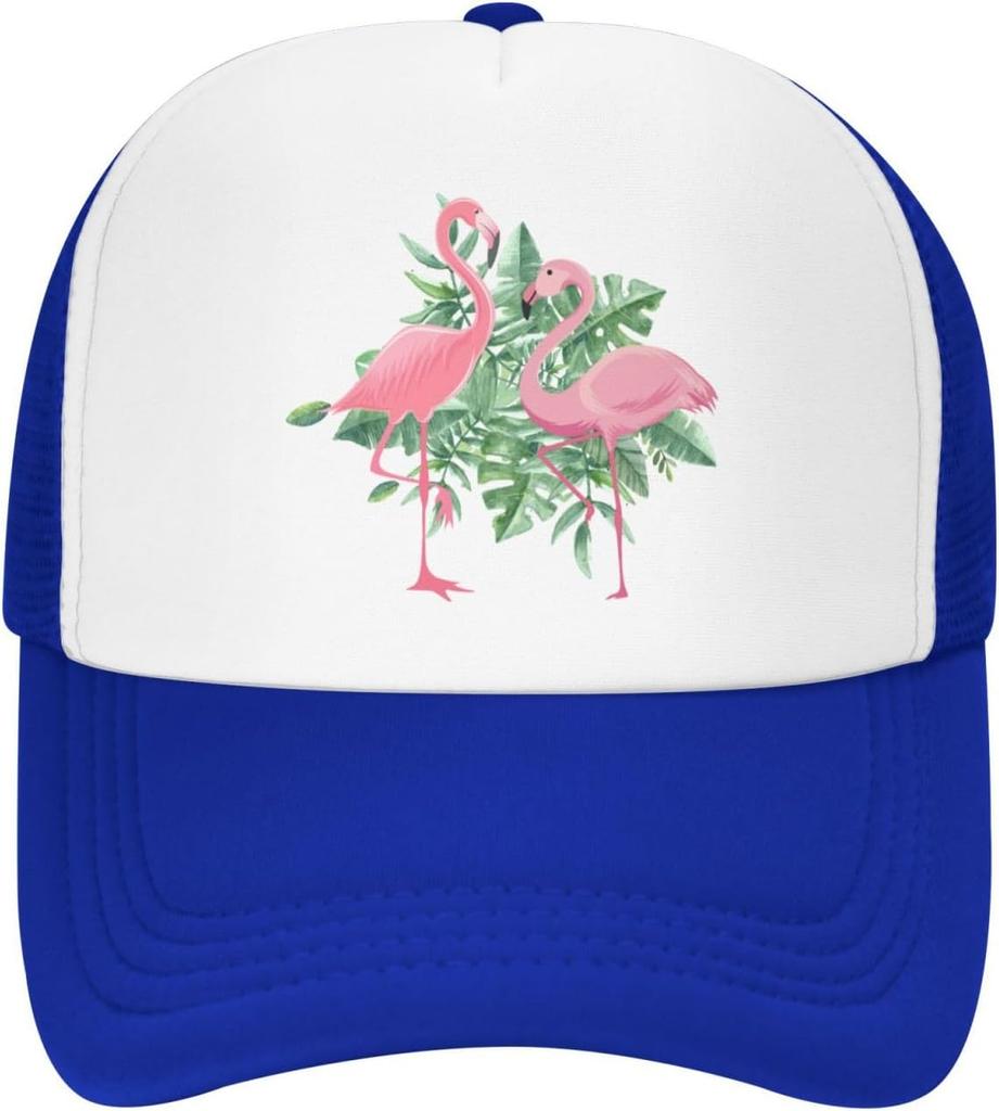 Flamingo Tropical Leaves Print Trucker Hat Adjustable Mesh Baseball Cap for Unisex Casual