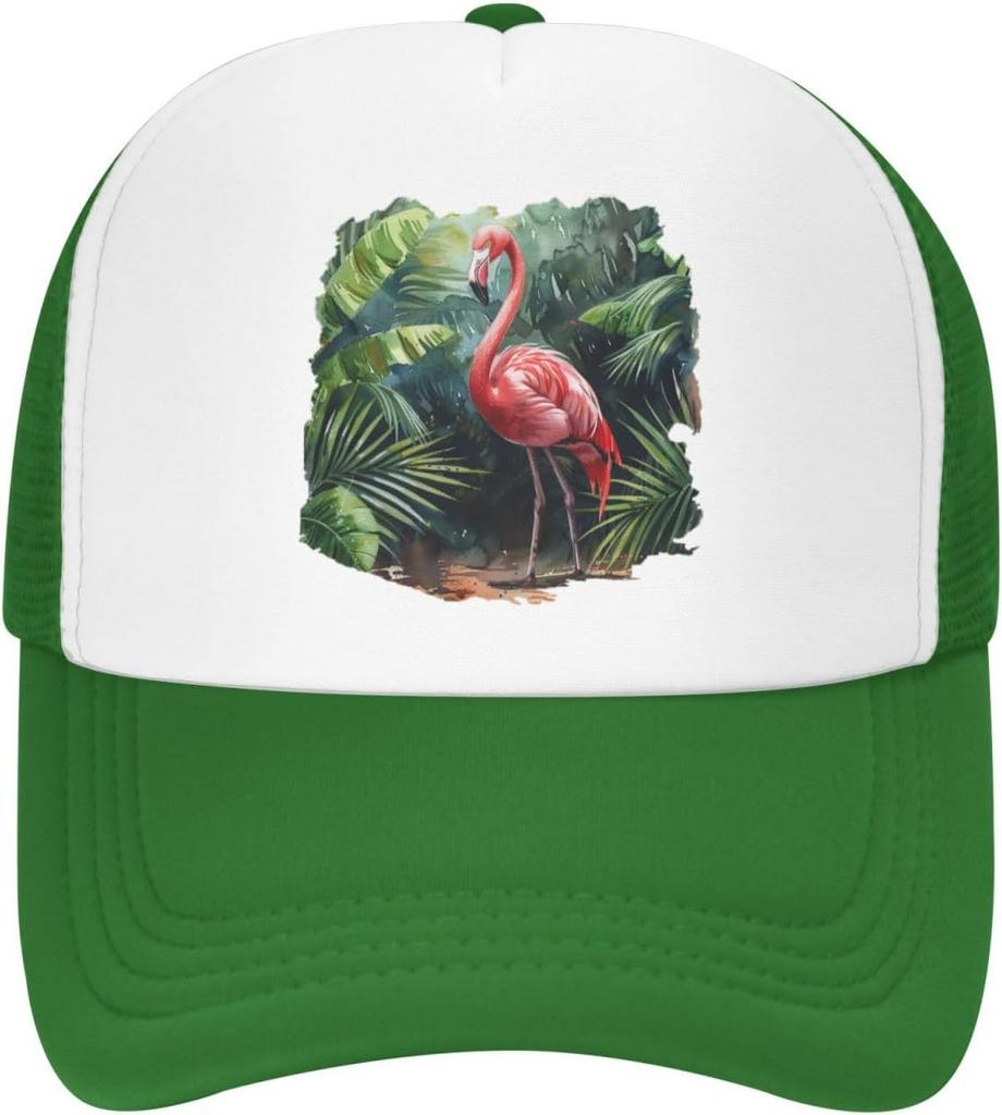 Flamingo Watercolor Palm Leaves Mesh Trucker Hat Adjustable Snapback Baseball Cap for Men Women