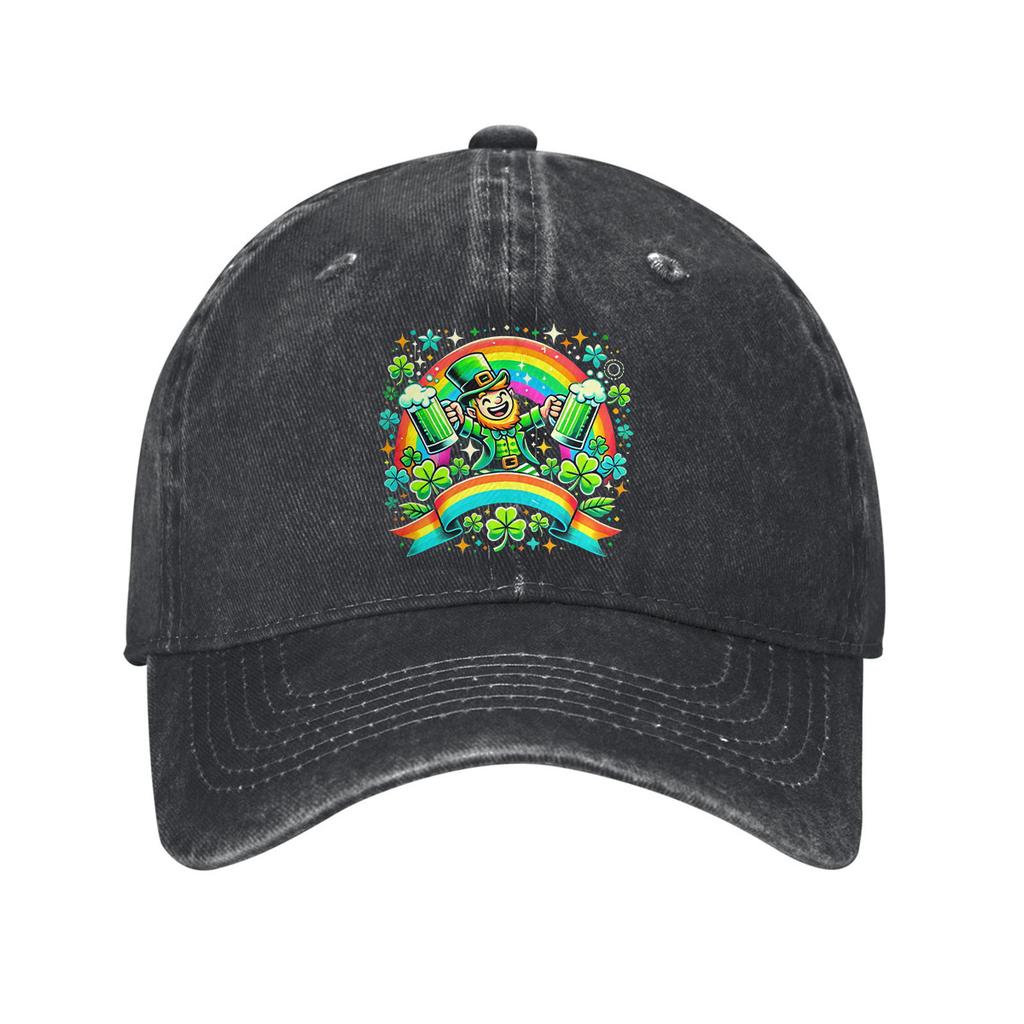 St Patricks Day Leprechaun Beer Mug Baseball Cap Cotton Adjustable Denim Black Outdoor Casual Hat