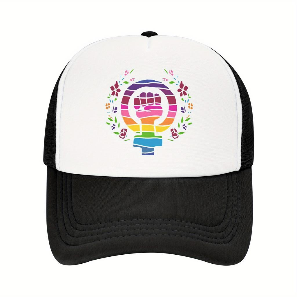 Feminist Fist Rainbow Symbol Trucker Cap Breathable Mesh Back Adjustable Casual Baseball Hat Unisex Outdoor