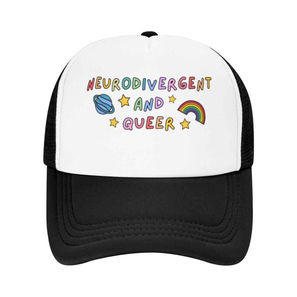 Neurodivergent and Queer Trucker Hat Breathable Mesh Baseball Cap Adjustable Adult Casual Sun Protection