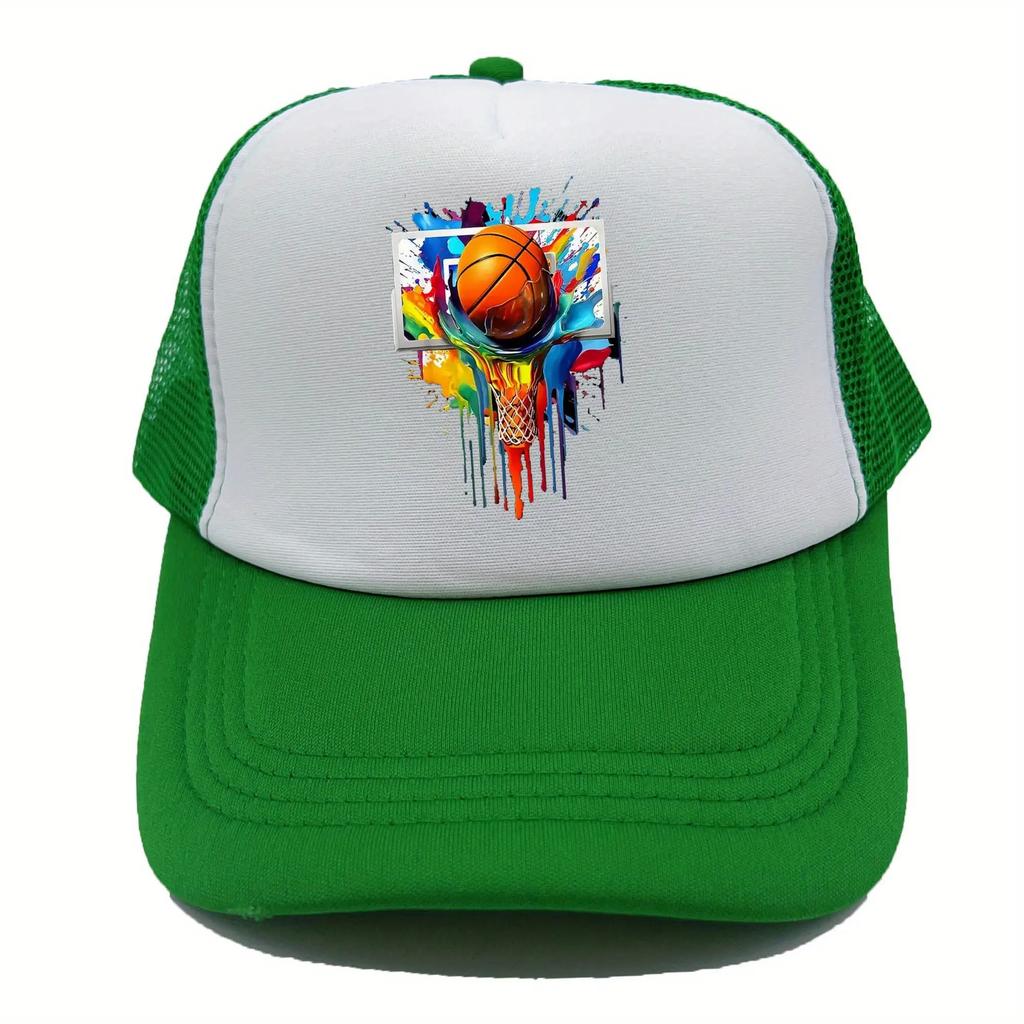 Colorful Basketball Splash Print Trucker Hat Breathable Mesh Baseball Cap Casual Adjustable Unisex