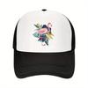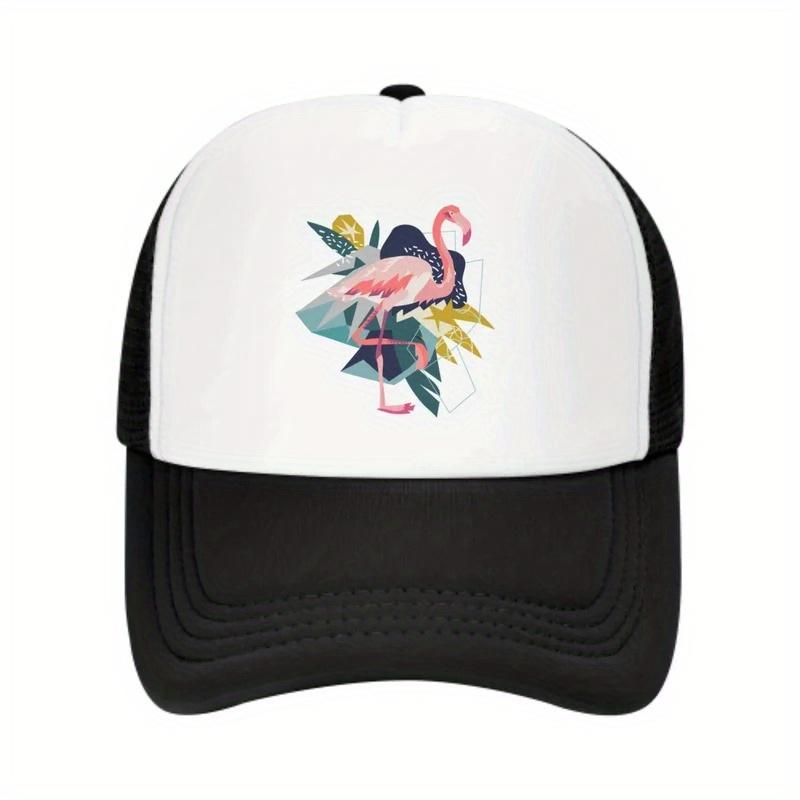 Flamingo Abstract Geometric Print Trucker Hat Unisex Polyester Adjustable Sun Cap for Casual Outdoor Wear