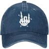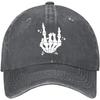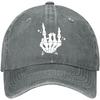 Skeleton Rock Hand Sign Baseball Cap Punk Cotton Washed Adjustable Hat for Men Women Outdoor