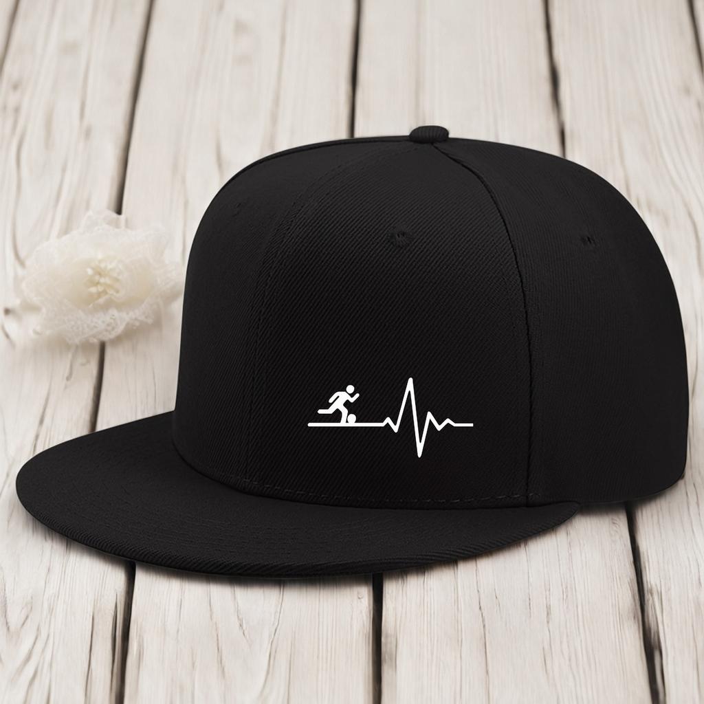 Soccer Heartbeat Lifeline Baseball Cap Polyester Flat Brim Adjustable Snapback Hat Unisex Sport Gear