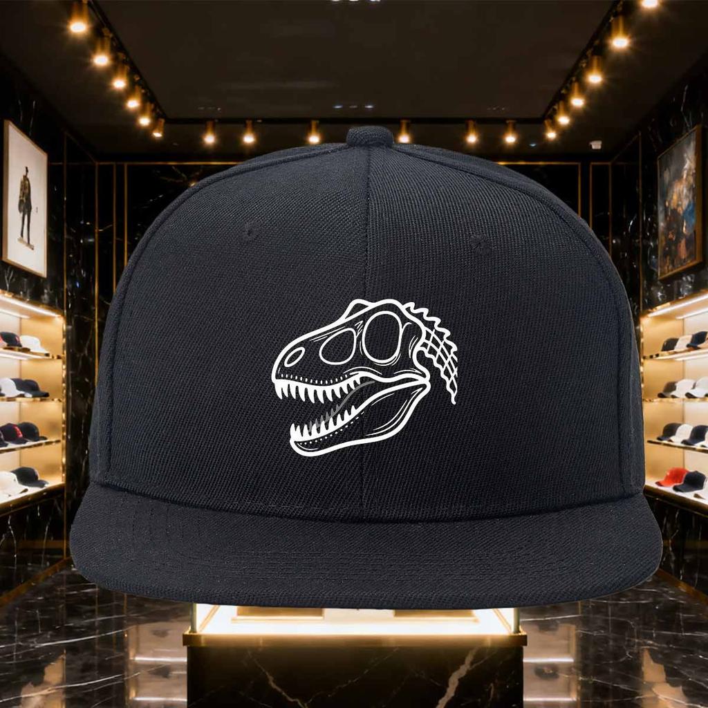 Dinosaur Skull Graphic Print Black Flat Brim Baseball Cap Unisex Polyester Snapback Outdoor Headwear