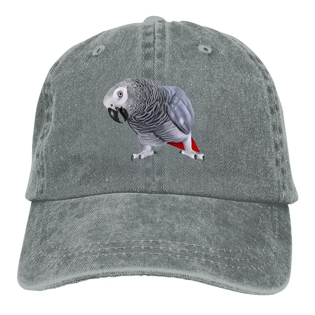 African Grey Parrot Bird Baseball Cap Distressed Denim Adjustable Sun Protection Casual Unisex Hat