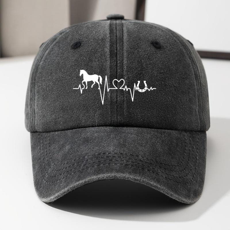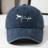 Vintage Baseball Cap Adjustable Vintage Washed Baseball Cap with Heartbeat Horse Silhouette Design Lightweight Breathable