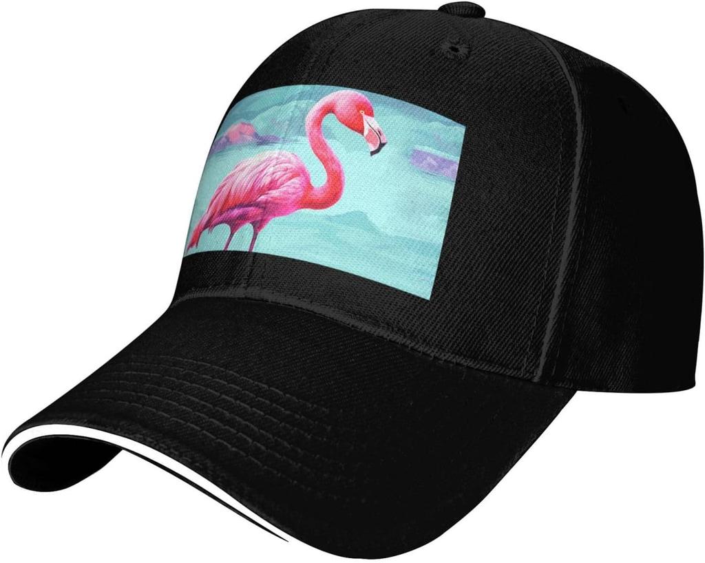 Flamingo Print Baseball Cap Polyester Adjustable Sun Protection Casual Trucker Hat for Unisex Adult