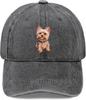 Yorkshire Terrier Dog Print Distressed Baseball Cap Soft Washed Adjustable Casual Outdoor Hat