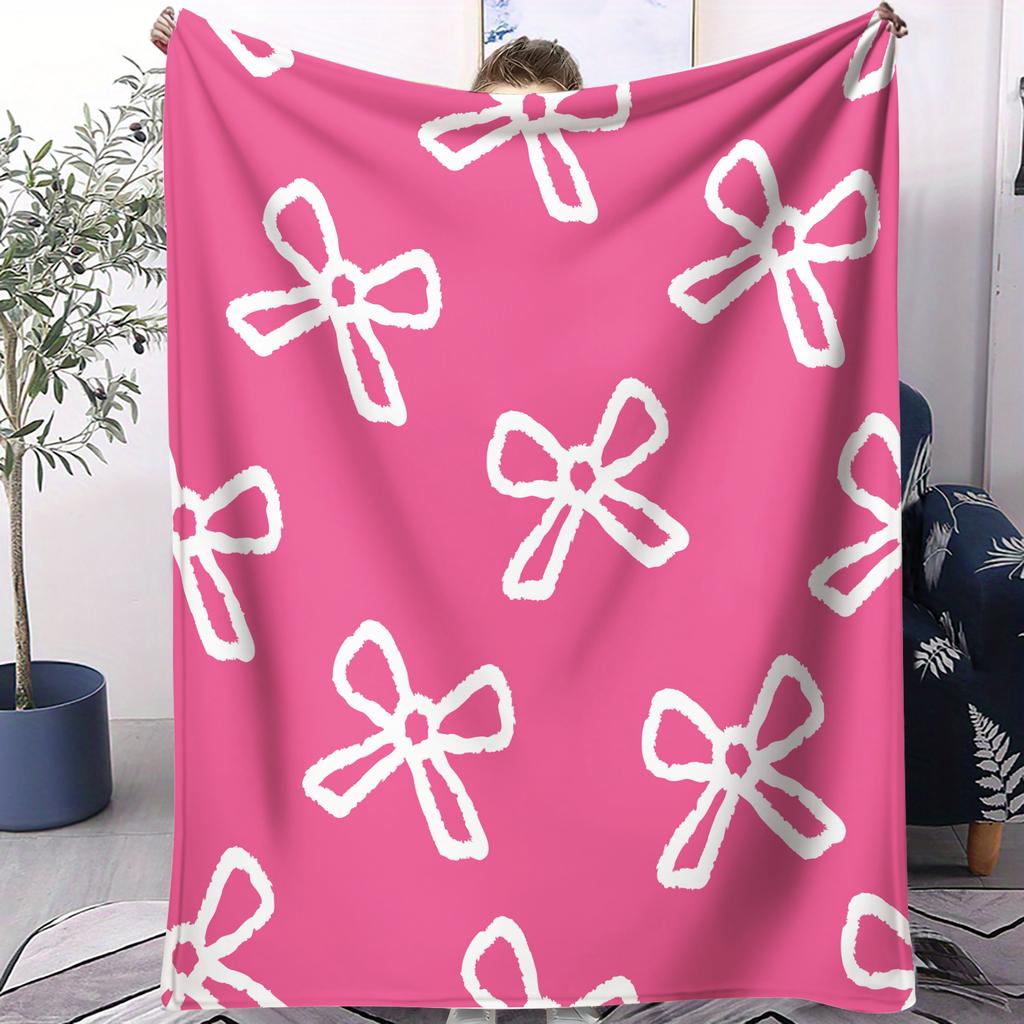 Vintage Sweetheart Bow,Heart&Shark Full-Print Fleece Blanket for Adult Quality Super Soft Warm Blanket for Travel Office Home