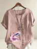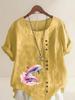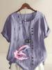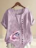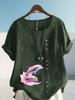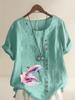 Women's Fashion Couple Dolphin Print Round Neck Short Sleeve T-shirt Summer Casual Cotton Linen Graphic Shirt Leisure Loose Blouse Tops