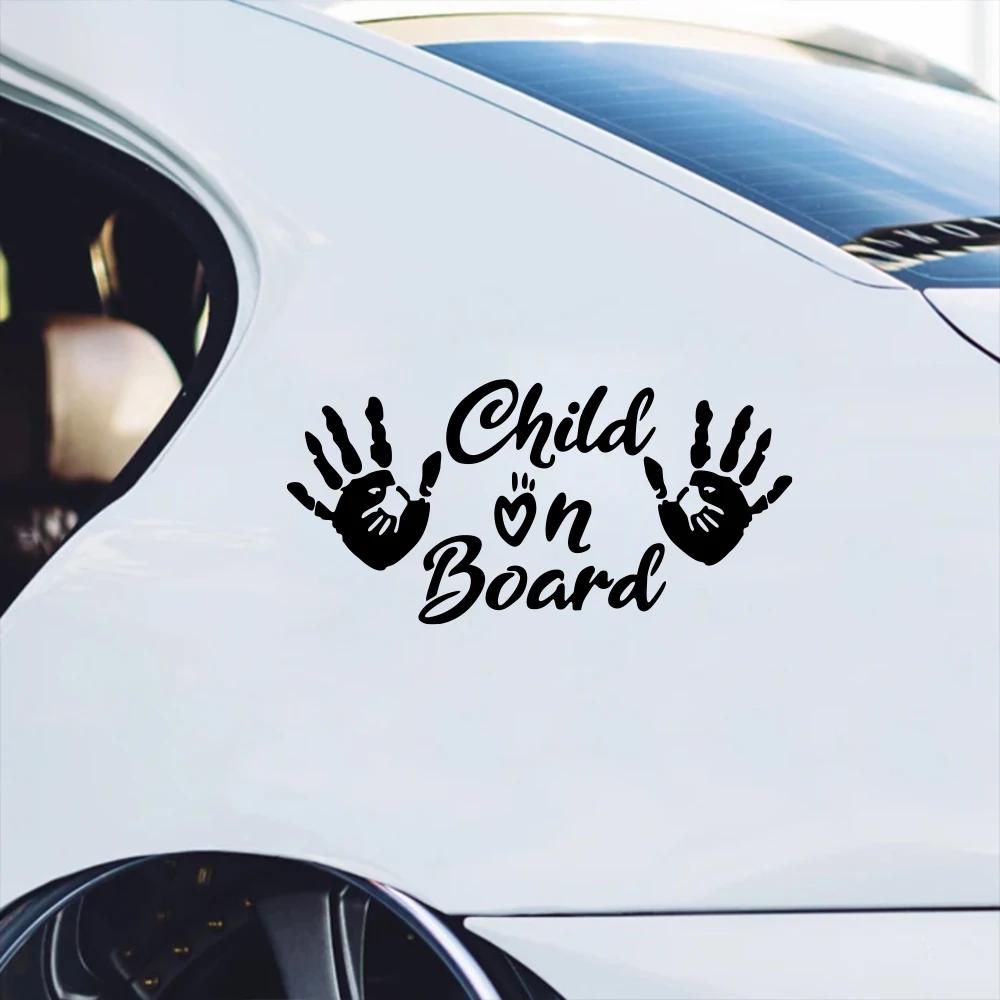 Child On Board Car Window Sticker Truck Door Decals Self-Adhesive Vinyl Palm Print Graphics Windshield Sign Decor Accessories