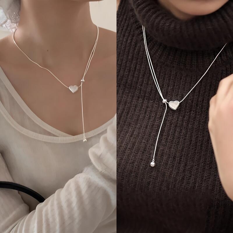 Women's S925 Silver Mother-of-pearl Heart Long Knit Necklace