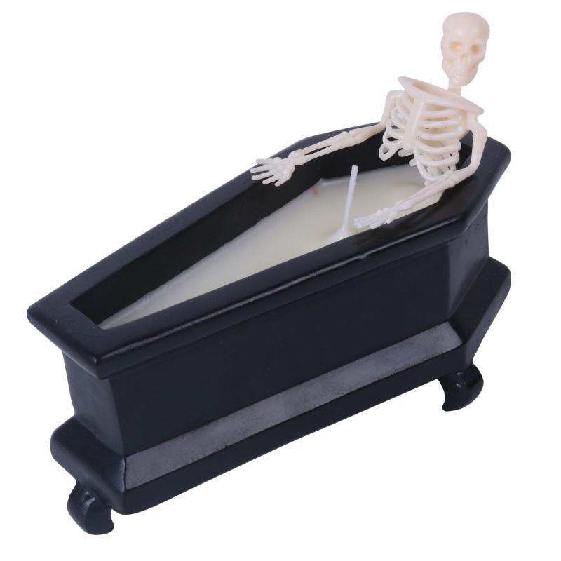 Resins Skeleton Decoration Coffin Shape Candle Horror Skull Sculpture For Holiday Displays Halloween Party Supplies