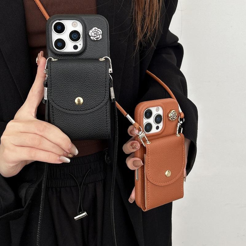 Crossbody Strap Lanyard Leather Phone Case for IPhone 16 Mini 16E 16 15 14 13 11 16Pro Max XS Wallet with Card Holder Cover