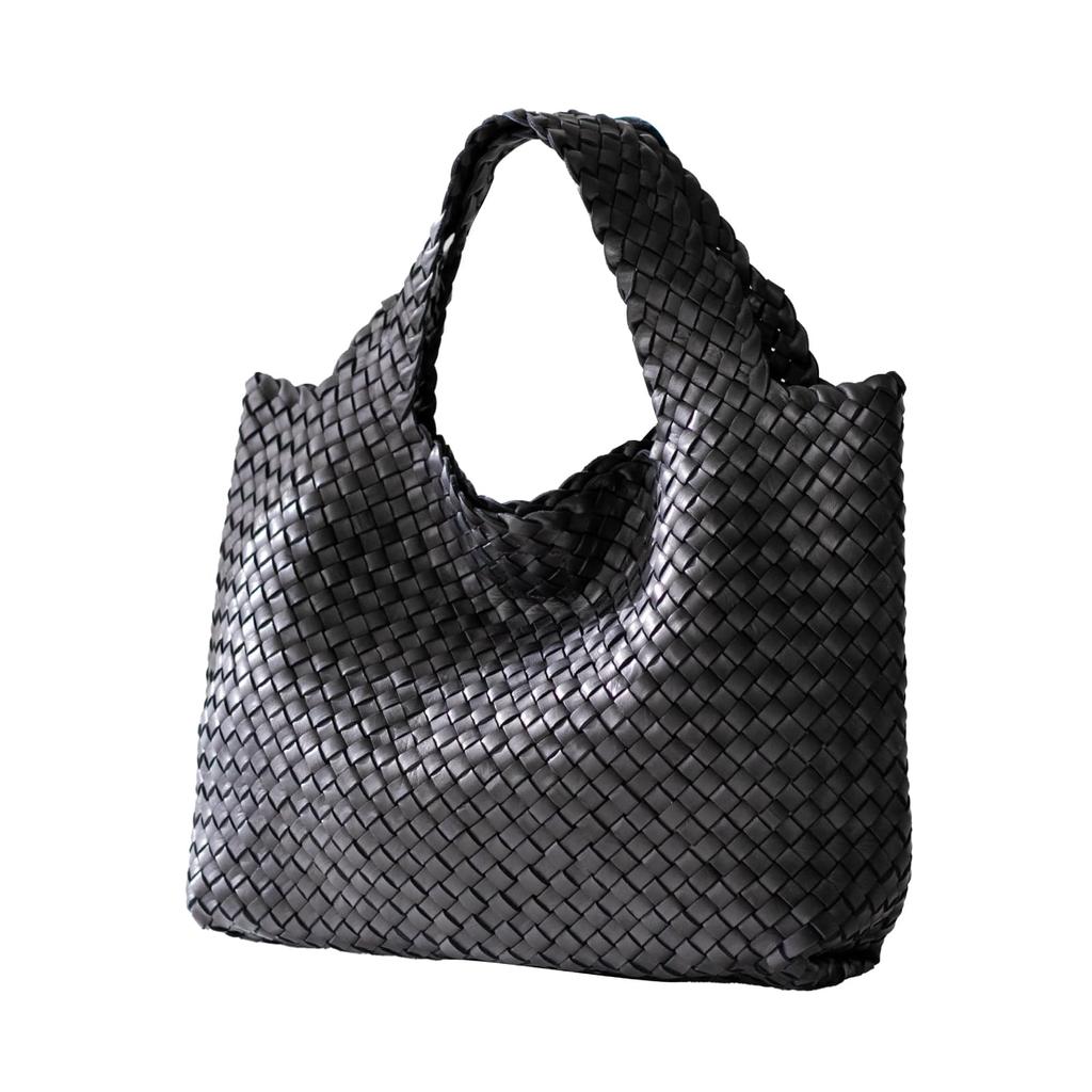 Material: Horse leather (pony). Hand-woven intrecciato is the charm of handcrafted work. The word "intrecciato" is derived from the Italian word "intrecciare" (to weave), past participle "intrecciato," and is used as an adjective to refer to hand-woven bags. In Japan, the word has become popular through Bottega Veneta's intrecciato products. Each intrecciato product is carefully hand-woven by artisans, allowing you to fully enjoy the soft feel of horse leather.