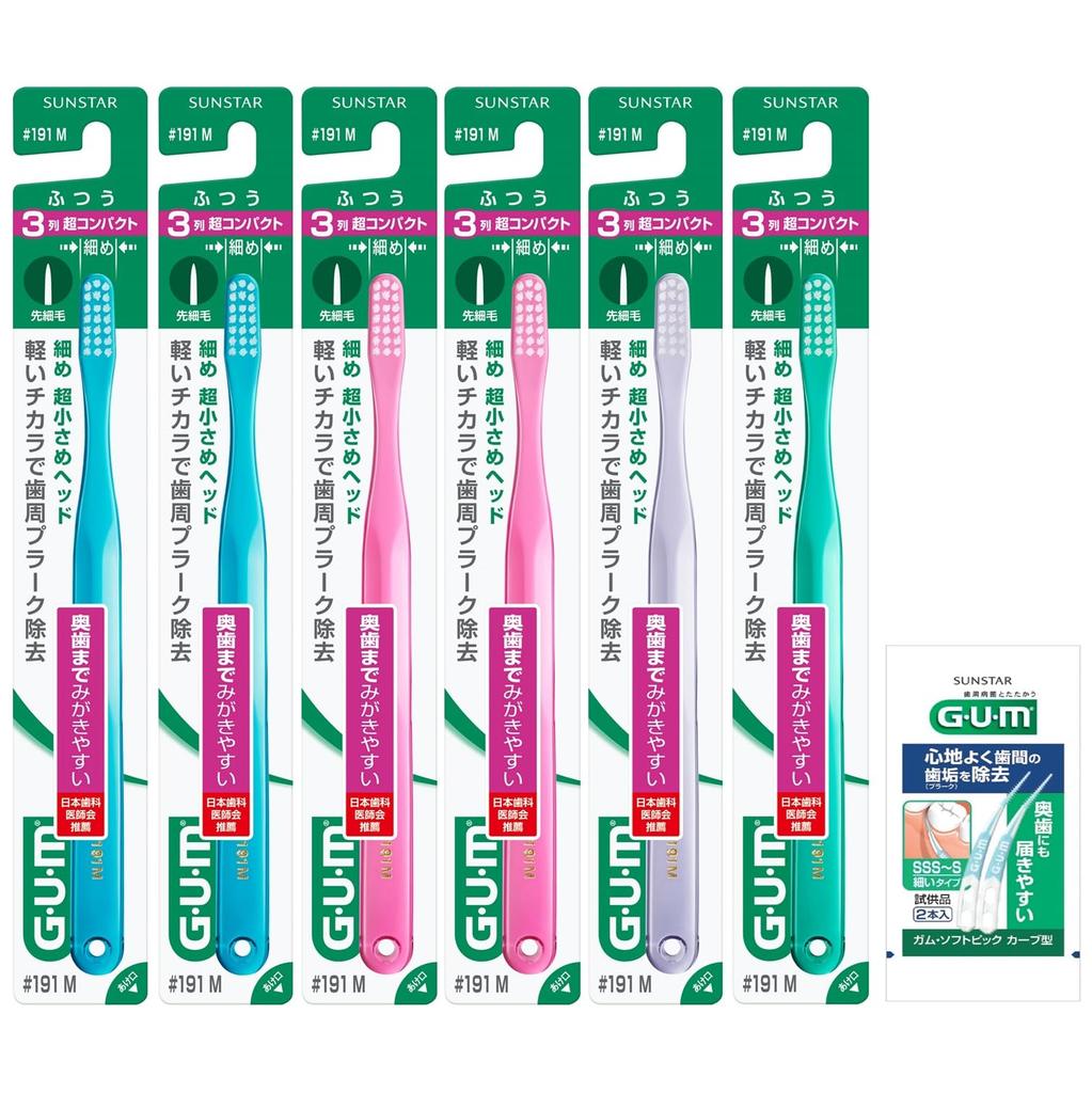 GUM Dental Toothbrush Ultra Compact Fine Bonus Gift Not Available #191 [3-Row Head, Regular, Bristles] 6-Pack + (Bulk Purchase) Colors [Used]