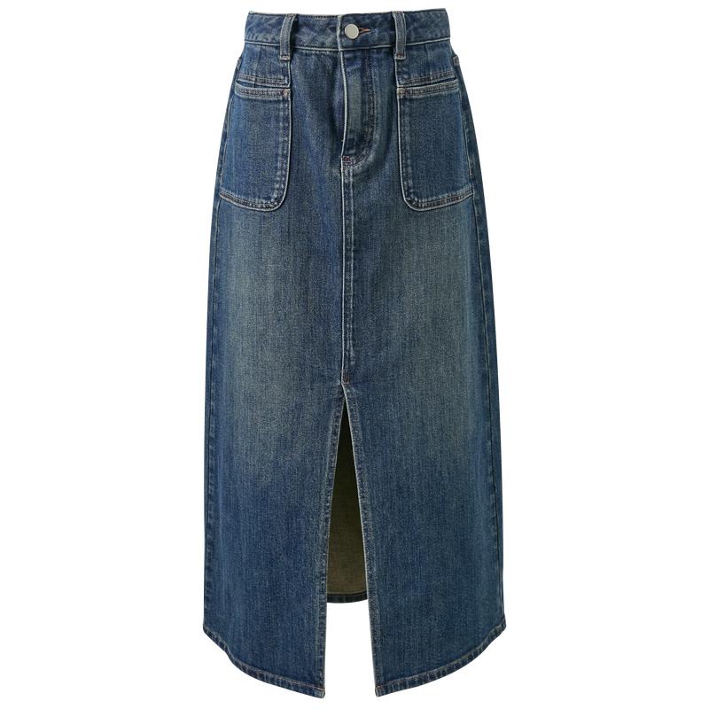 Sancai 2026 Spring Denim High-Waist Slit Skirt