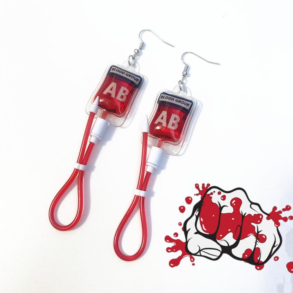 Type a B O AB Plasma Blood Bag Earrings PVC Halloween Jewelry Funny Blood Bag Necklace Cosplay