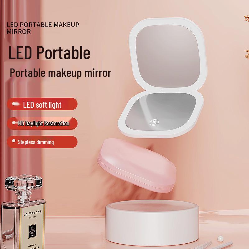 Portable Double-Sided LED Makeup Mirror with USB Charging and Custom Logo