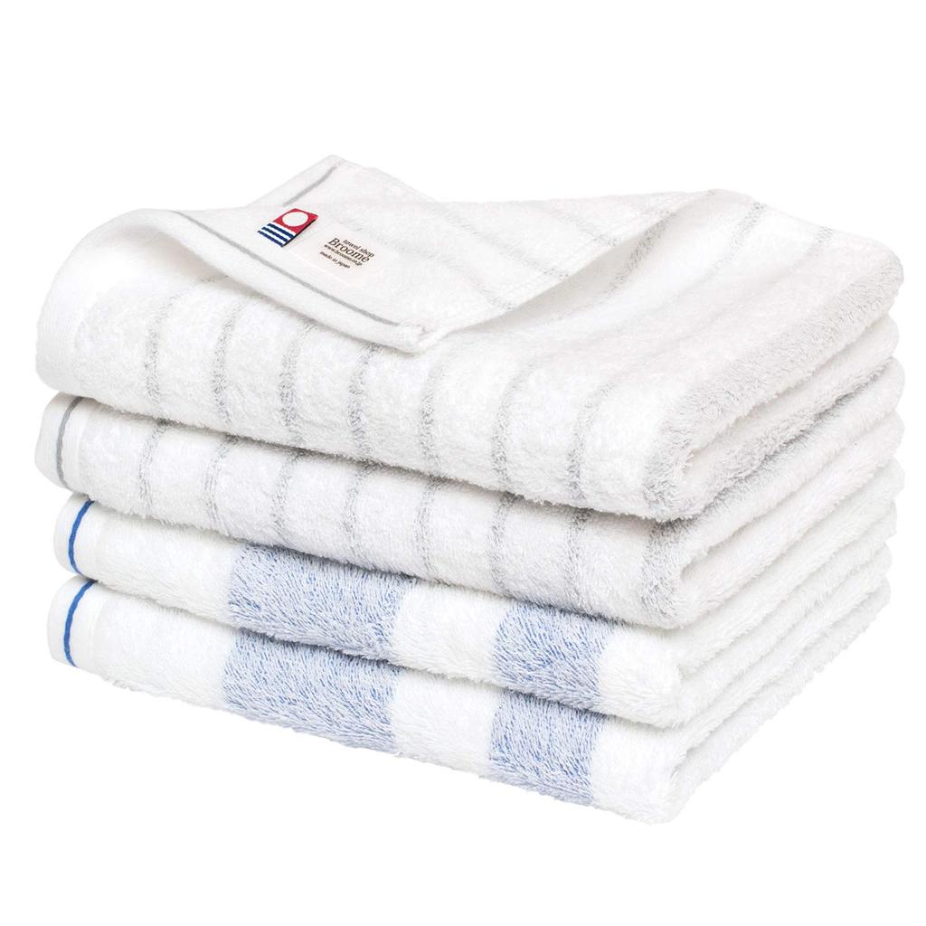Bloom Imabari Certified Face Set of Natural Indoor Made In Japan Towels, 4, Border, Absorbent, Quick-Drying, Drying, Soft, 100% Cotton, (Blue/Gray)