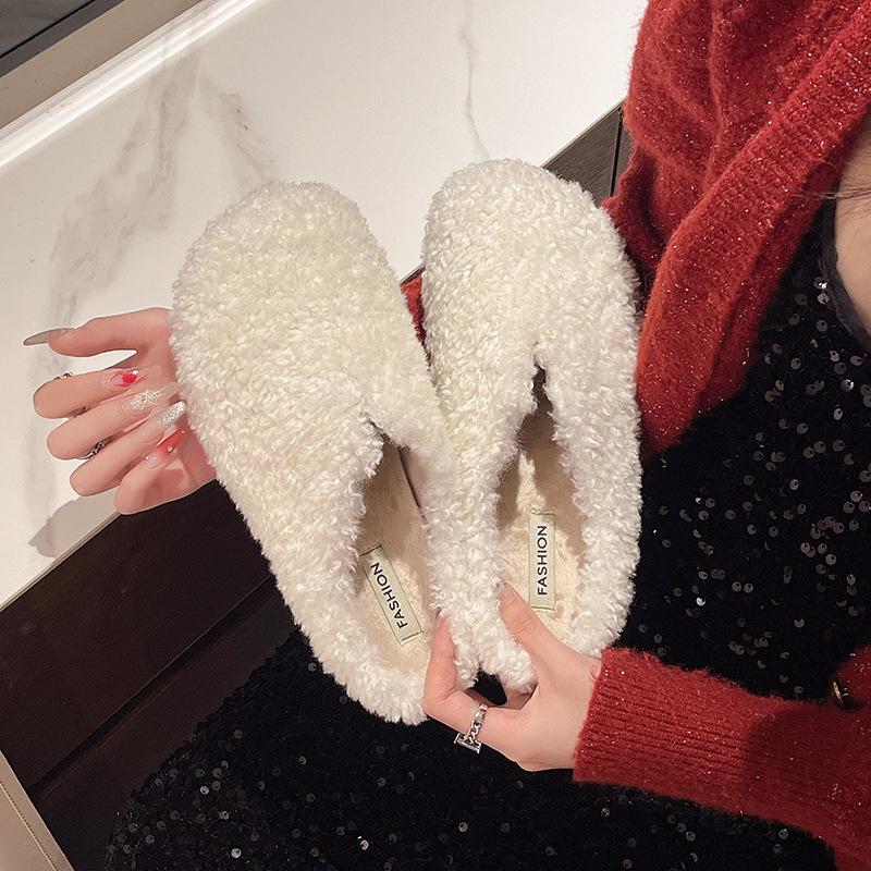 Autumn and Winter Simple Lazy Bag Head Wool Shoes Lamb Wool Lazy Half Drag Warm Outer Flat Slippers