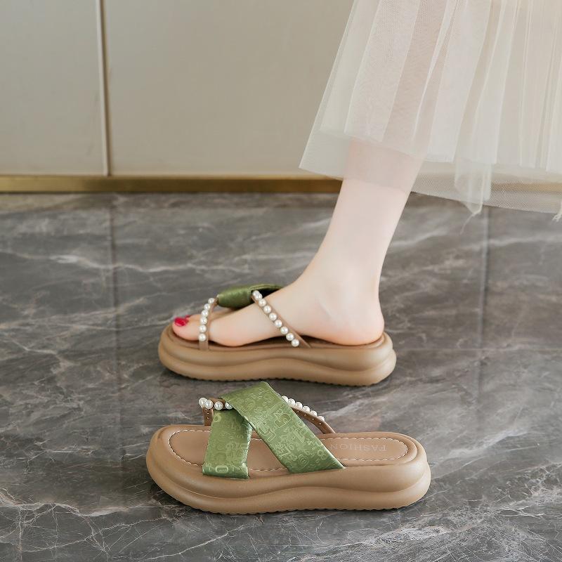 Cool Slippers 22 Summer New with Skirt Fairy Wind Beaded Thick Bottom Crossed Beach Slippers