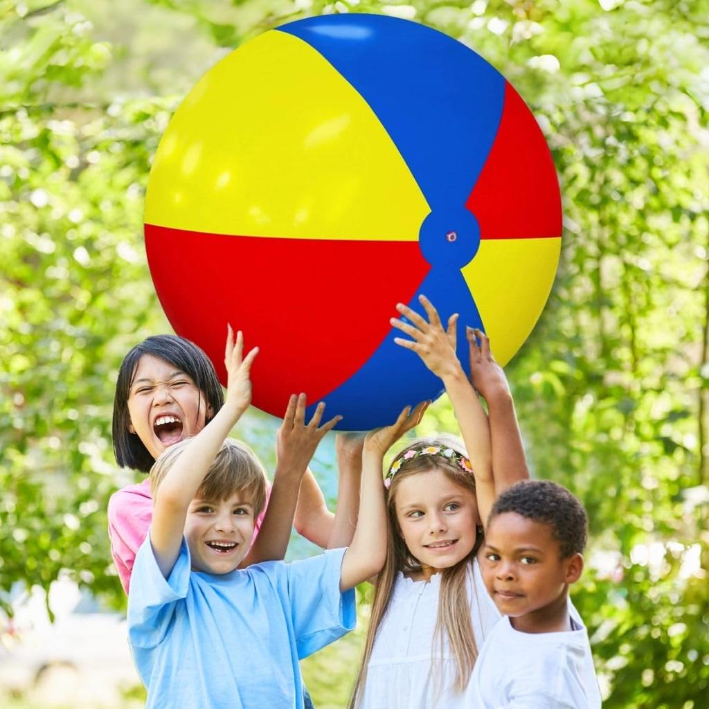 [Durable and Long-Lasting, High-Quality PVC Material] Made with thick vinyl material, it's tear-resistant even after repeated inflation, ensuring long-term use. It's lightweight and impact-resistant, so kids can kick and roll it around on the beach or by the pool without worry. Perfect for family beach games, water activities, or outdoor parties with friends, this durable and safe outdoor item is designed to last.