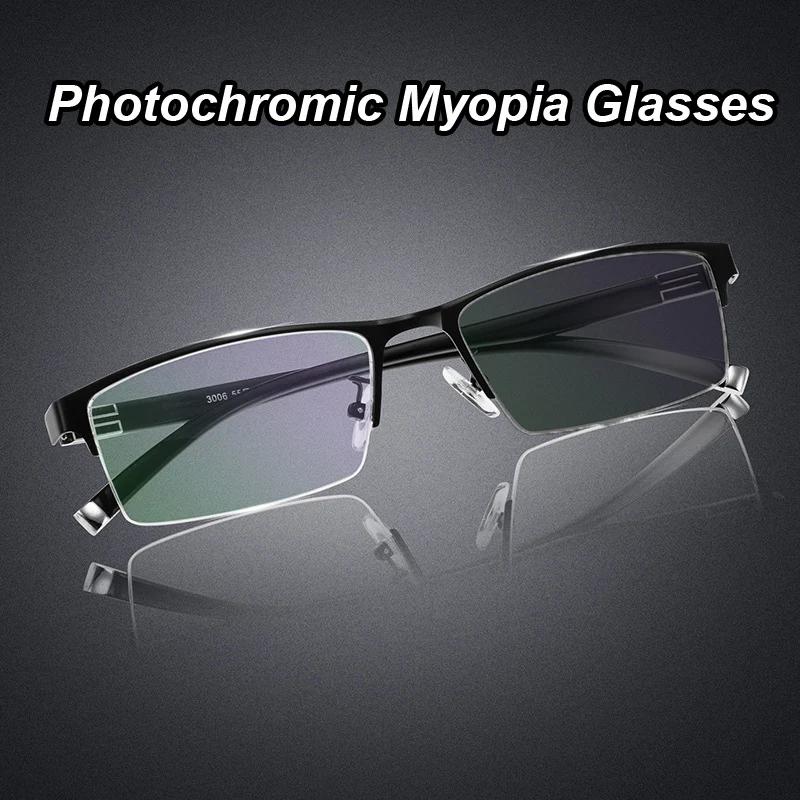 Business Half Frame Myopia Glasses Photochromic Eyewear Diopter 0 To -6.0 Trend Women Men Near Sight Eyeglasses