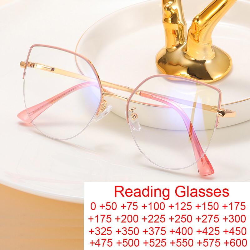 Anti Blue Light Computer Glasses Women Cat Eye Semi Rimless Eyewear Frame Clear Lens Gaming Eyeglasses