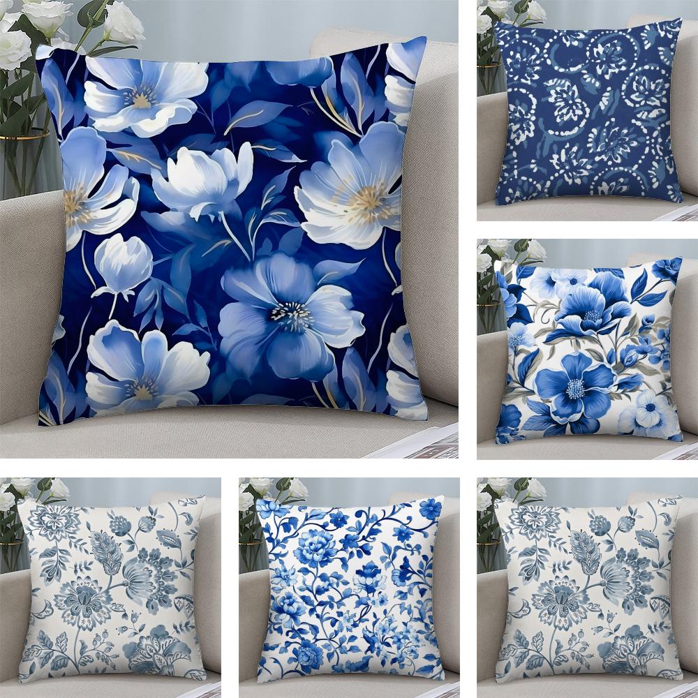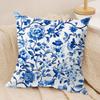 Ethnic Style Blue Floral Cushion Cover Soft Plush Fabric Double-Sided Printed Sofa Cushion Cover for All Seasons Home Decor Gift