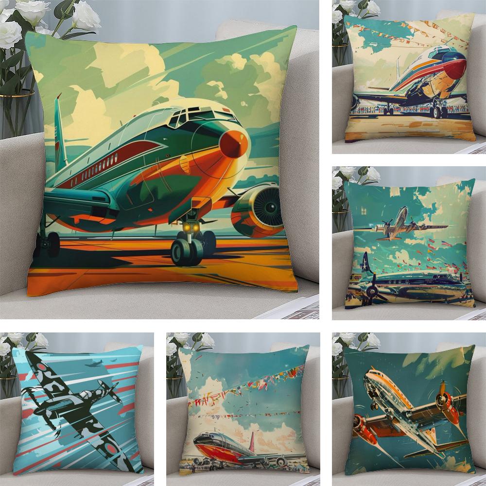 Aircraft Airplane Cool Cushion Cover Soft Plush Fabric Double-Sided Printed Sofa Cushion Cover for All Seasons Home Decor Gift