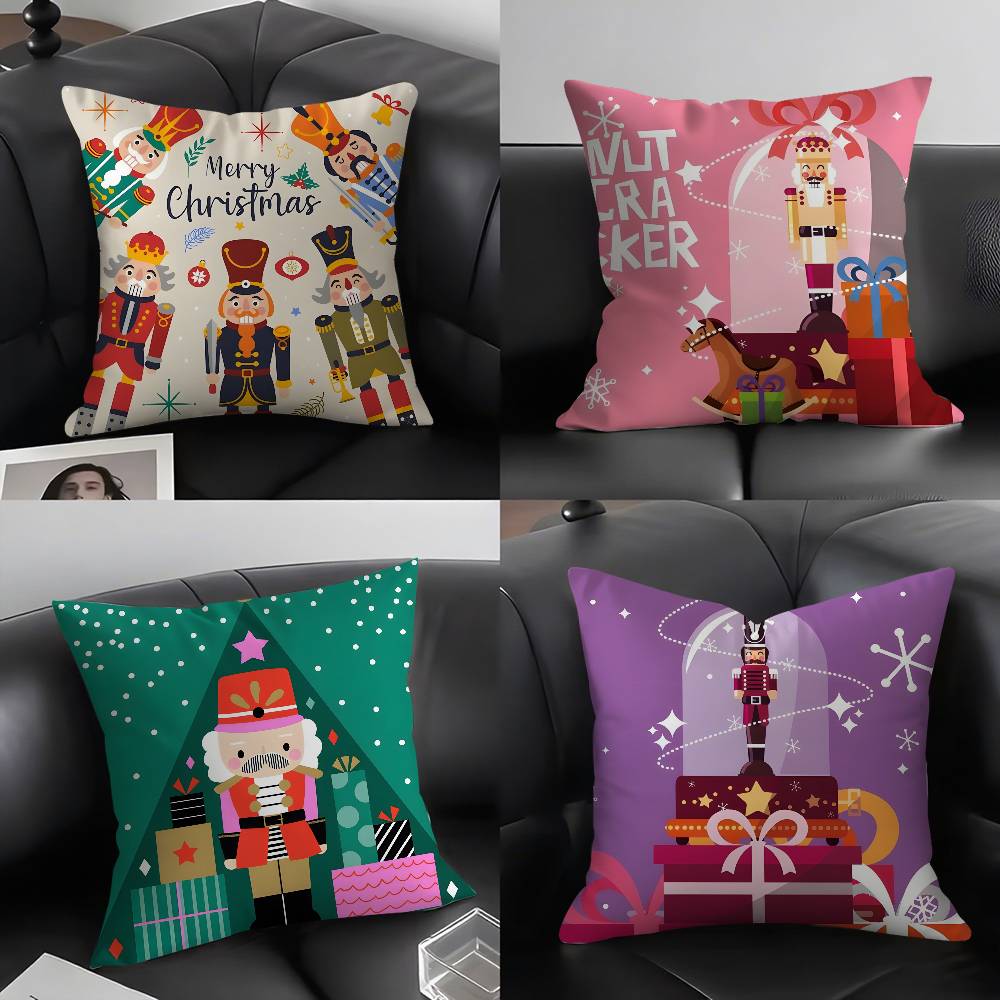 Nutcracker Soldier Christmas Pillow Case Home Dorm Chair Back Short Plush Double-sided Printing Office Nap Time Cushion Cover