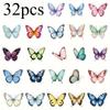 32 Pcs/Box Vibrant Butterfly Stickers - Waterproof PET Adhesive for Laptops Scrapbooks Transparent Colorful Decorative Stickers.