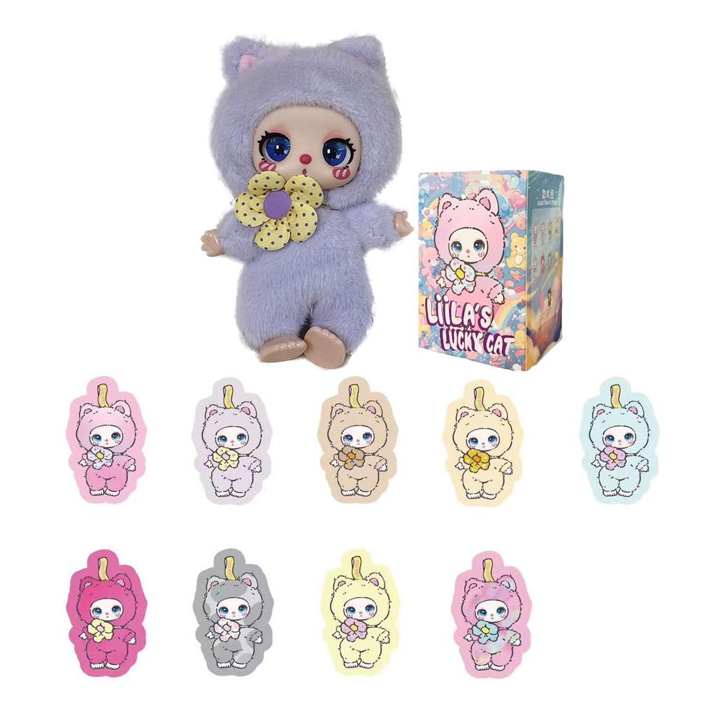 Liila Toys 1st Generation Liila's Lucky Cat Mascot Plush Toy Blind Box with Cute Pastel Design 10 Types, 2 Secret Varieties (1 Random)