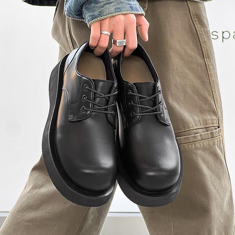 Black Platform Derby Shoes, New Niche Heightening Casual Leather Shoes, British Commuter Big Head Shoes