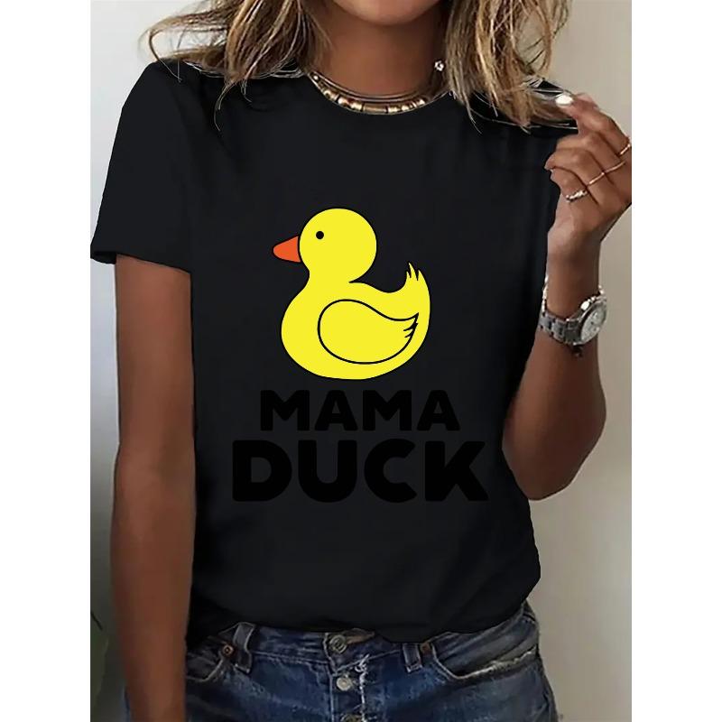 Women MAMA DUCK Print T-Shirt Round Neck Short Sleeve All-Season Casual Sporty Multi-Color S-XXL Top